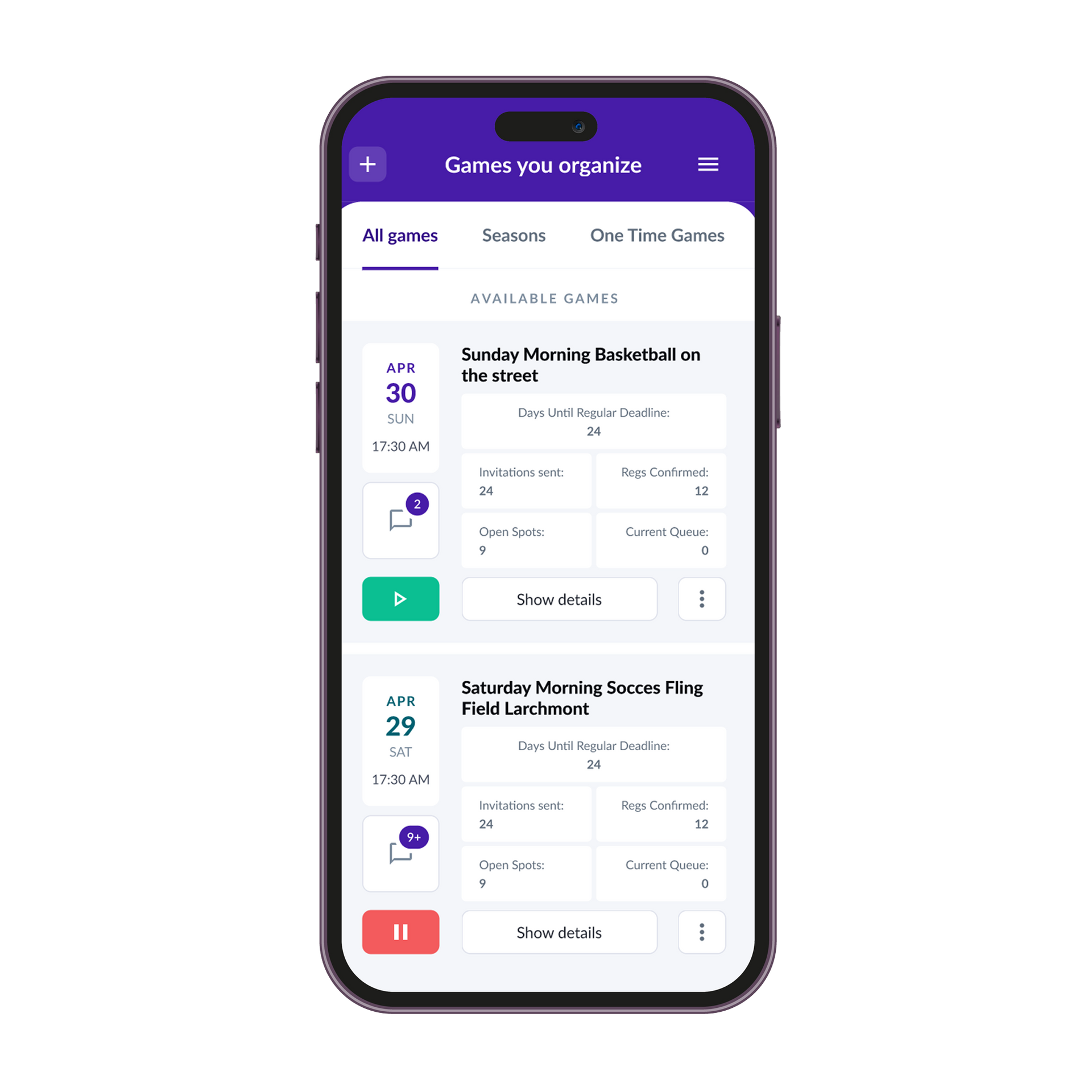 Easily Create Seasons of Games or One-Time Pickup Games. Copy previous Seasons in a click!
